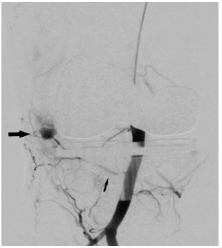 On the other hand Guevara et al. [11] showed the significance of identifying other cases including blood dyscrasias, as their presence led to repeat embolization and limited clinical success. In a series of eight cases by Dhondt et al. [12] mentioned that angiography revealed hypertrophic vascular synovium in seven patients with an additional false aneurysm in one patient.