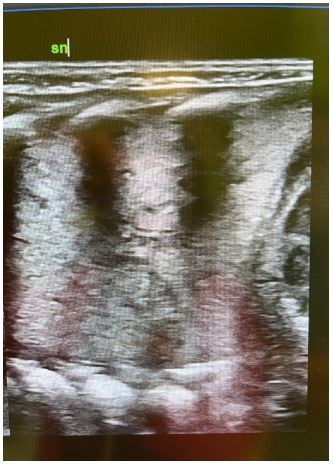 Lung ultrasound is a new and promising bedside monitoring. Do to non-invasive and easy approach, its use in the NICU is increased during diagnosis, follow up and treatment options (LUS score) in many lung diseases such as pneumothorax and respiratory distress syndorme. No data was reported about ultrasound imaging in pulmonary sequestration during the neonatal period. Our case is an early incidental diagnosis of unexpected extra lobar lung sequestration (ELS). Pulmonary sequestration is a rare congenital disease that comprises a non- functioning mass of pulmonary tissue separated from the bronchopulmonary tree. It receives blood supply from the systemic circulation with or without a separate venous drainage. It comprises from 0.15 to 6.4% of all congenital lung malformations [1]. Intralobar Sequestration (ILS) is abnormal lung tissue surrounded by normal lung pleura, while ELS has its own separate pleura. ELS is less common than the ILS and comprises approximately 25% of all sequestrations. They are predominantly featured in males (4:1), left-sided (65%), and are often associated with other congenital malformations (65%) [2]. It account for 23% of pulmonary anomalies diagnosed in utero [1]. While approximately 70% of congenital lung malformations are detected during fetal life [3], only 10% of ELS are detected incidentally in asymptomatic adults [4]. More of the 60% of ELS manifest clinically within the first six months of life, as respiratory distress, feeding intolerance, malabsorbotion and occasionally pulmonary or pleural haemorrage [1]. Early surgical approach is reccomended to reduce pulmonary complications [5].